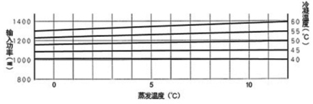 在獲取同樣制冷量的前提下,壓縮機(jī)輸入功率越低,能效比(=制冷量/壓縮機(jī)輸入功率)越高??聪聢D,同理也要降低冷凝溫度,才可以獲取高的能效比。
