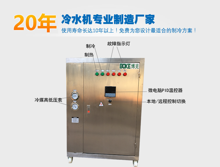 3、博克可以根據客戶不同的工藝、控制、溫度、電源、尺寸、顏色等需求定制冷水機,請聯系博克公司銷售熱線13515886884獲得用戶所需工況的選型報告。