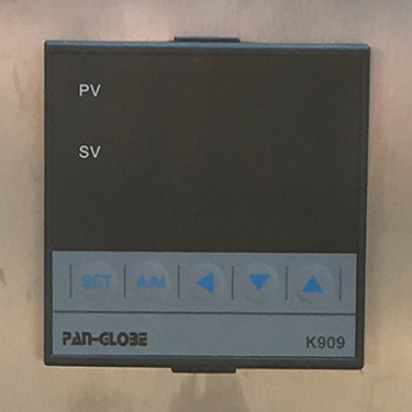 溫控器第一行顯示窗顯示當(dāng)前溫度,溫控器第二行顯示窗顯示當(dāng)前溫度設(shè)定值。按溫控器操作面板上的上下按鍵,增加或減少設(shè)定溫度值。