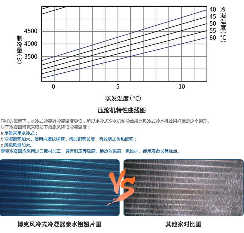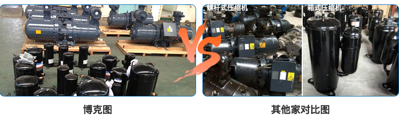 博克冷水機(jī)采用進(jìn)口高端品牌谷輪/大金壓縮機(jī),其他部分廠家采用普通品牌或二手壓縮機(jī),甚至以小充大,使用不足匹壓縮機(jī)