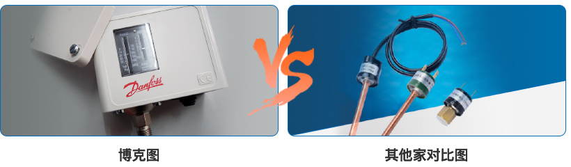 5、博克冷水機(jī)采用丹弗斯高低壓控制保護(hù)器,壓力控制范圍可調(diào),并且是采用手動(dòng)復(fù)位的方式,以方便客戶及時(shí)發(fā)現(xiàn)報(bào)修,避免壓縮機(jī)頻繁開(kāi)啟。大部分廠家采用不可調(diào),單點(diǎn)自動(dòng)復(fù)位,有故障不易及時(shí)發(fā)現(xiàn),容易造成壓縮機(jī)損壞。