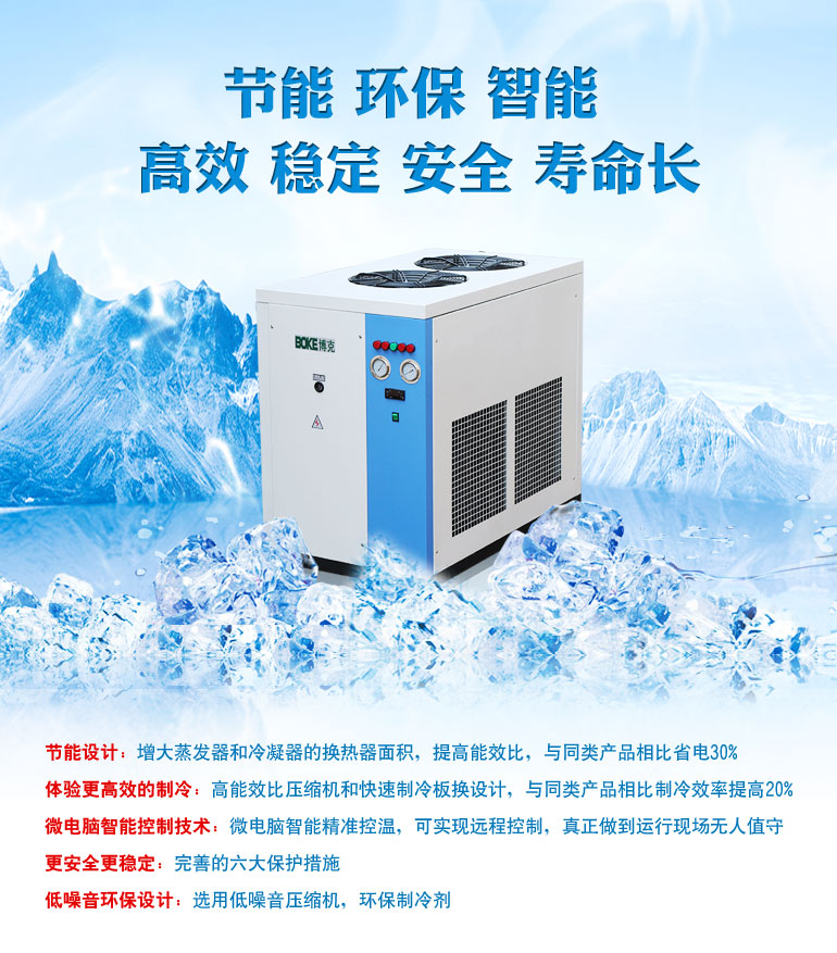 寧波北侖博克冷卻設(shè)備有限公司專(zhuān)業(yè)生產(chǎn)3.8-93KW制冷量單機(jī)型風(fēng)冷箱式冷水機(jī),風(fēng)冷式冷水機(jī)無(wú)水損耗,適用于水資源缺乏和水質(zhì)較差的地區(qū),由于靠強(qiáng)制通風(fēng)散熱,需要安裝在通風(fēng)效果好的地方,無(wú)需擔(dān)心結(jié)冰,非常合適北方冬天使用。