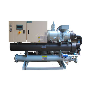 水冷螺桿式低溫冷水機(jī)組在工業(yè)冷卻方面可以實(shí)現(xiàn)各種低溫冷卻,在冷凍水側(cè)加入適當(dāng)?shù)姆纼鰟┖?,可以?shí)現(xiàn)0~-35℃的出水溫度,以適應(yīng)不同的工業(yè)冷卻要求。通常采用的防凍劑溶劑有乙二醇、氯化鈉和氯化鈣溶液,在應(yīng)用中根據(jù)不同的出水溫度設(shè)定不同濃度防凍劑溶液。