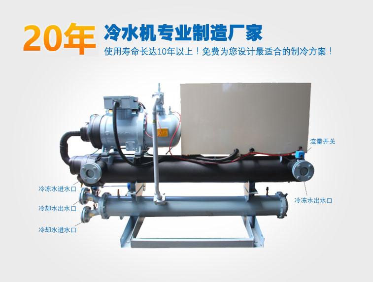1、冷凍水進(jìn)水溫度-11℃、冷凍出水溫度-15℃;冷卻水進(jìn)水溫度30℃,冷卻水出水溫度35℃
