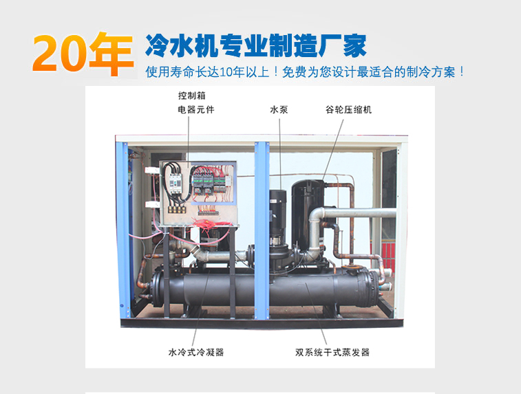 8)冷水機(jī)采用人性化設(shè)計(jì),其冷量充足且體積小、結(jié)構(gòu)合理、外型美觀、操作方便。