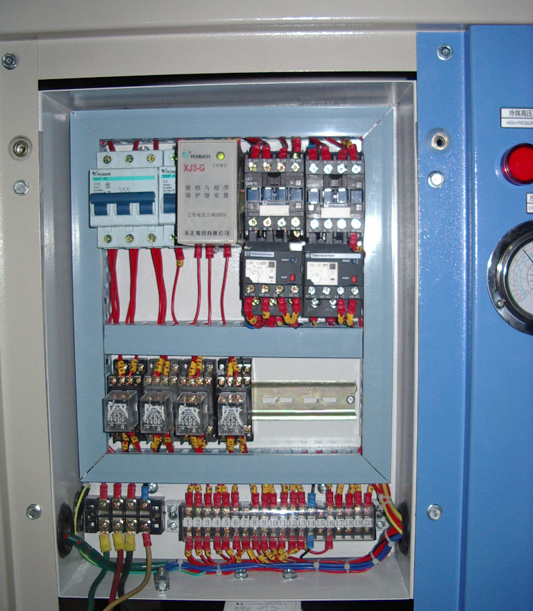 3)采用德國(guó)施耐德電氣產(chǎn)品,具有完善的電氣保護(hù)系統(tǒng),如缺/錯(cuò)相保護(hù)、超高/低壓保護(hù)、過(guò)熱/過(guò)流保護(hù)、防凍保護(hù)、水?dāng)嗔鞅Wo(hù)等。保護(hù)措施齊全,且所有故障均在面板上顯示,設(shè)置低液位報(bào)警器。