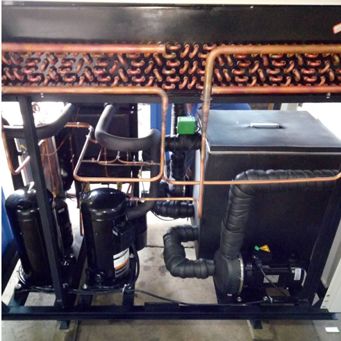 5)風(fēng)冷式冷凝器采用蜂窩翅片串高效內(nèi)螺紋紫銅管配合高效外轉(zhuǎn)子風(fēng)機(jī),換熱效果非常好。